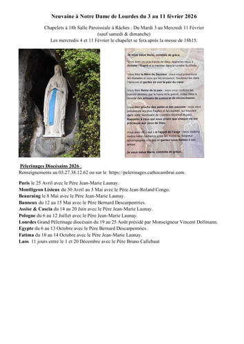 Chapelets à 18h Salle Paroissiale à Râches : Du Mardi 3 au Mercredi 11 Février (sauf samedi & dimanche)